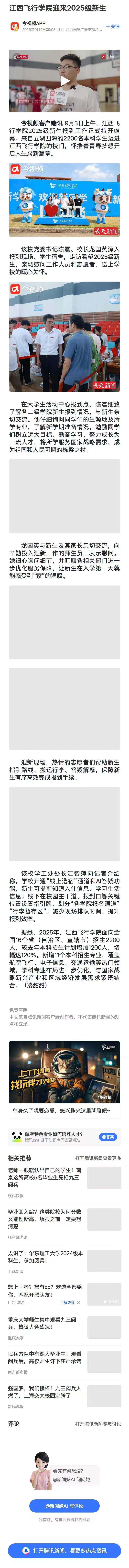 近日,腾讯网报道,江西飞行学院迎来2025级新生详情如下: