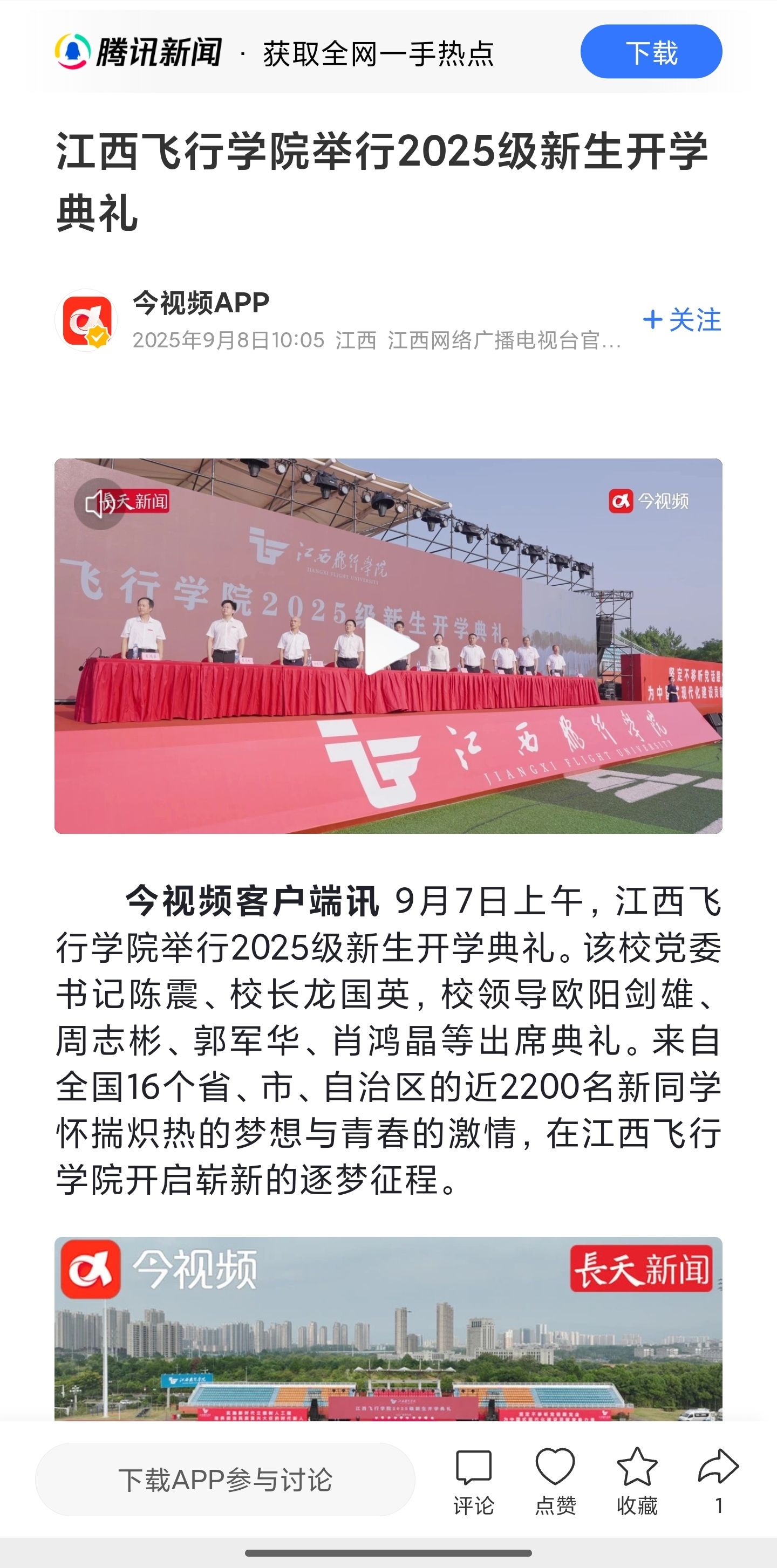 近日,腾讯新闻报道江西飞行学院举行2025级新生开学典礼详情如下:
