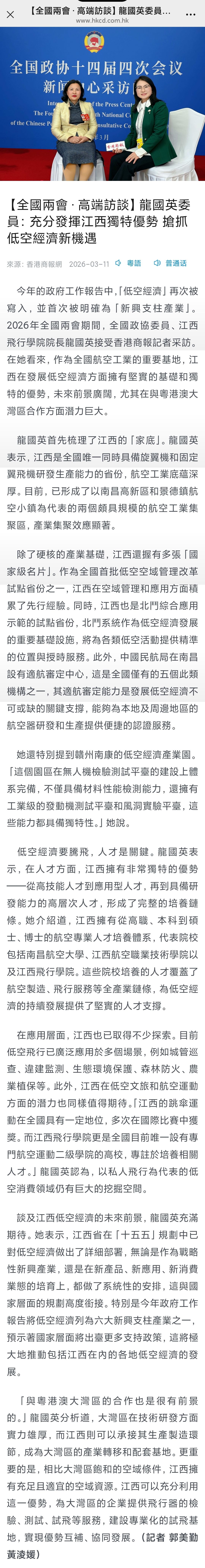 香港商报:【全國兩會·高端訪談】龍國英委員:充分發揮江西獨特優勢 搶抓低空經濟新機遇