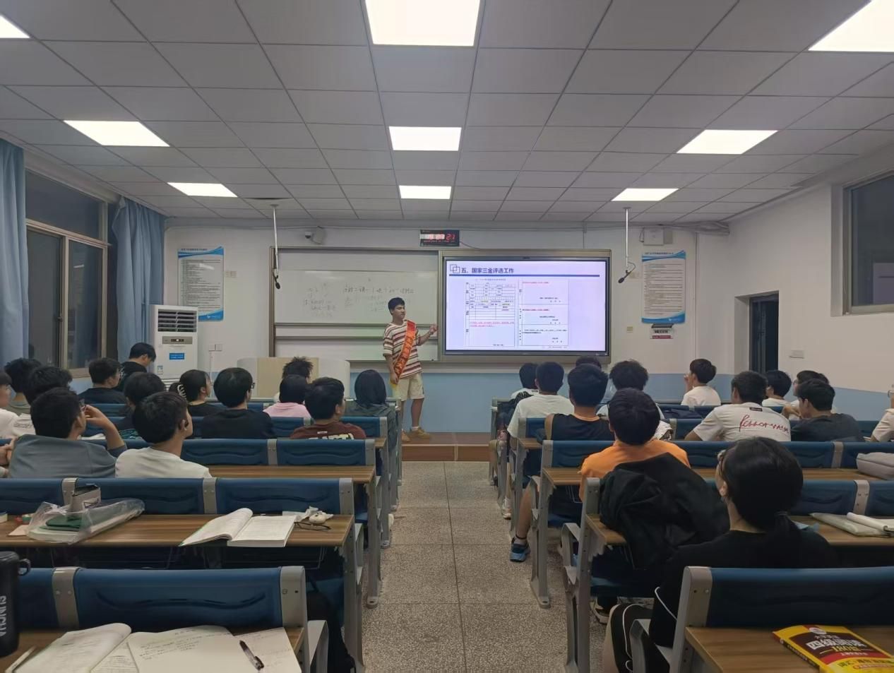 为进一步贯彻落实国家资助政策,强化学生的诚信感恩意识,学工处组织学生资助宣传大使深入全校2025级新生班级开展国家奖学金、国家励志奖学金、国家助学金资助政策宣讲,覆盖2025级58个新生班级。
