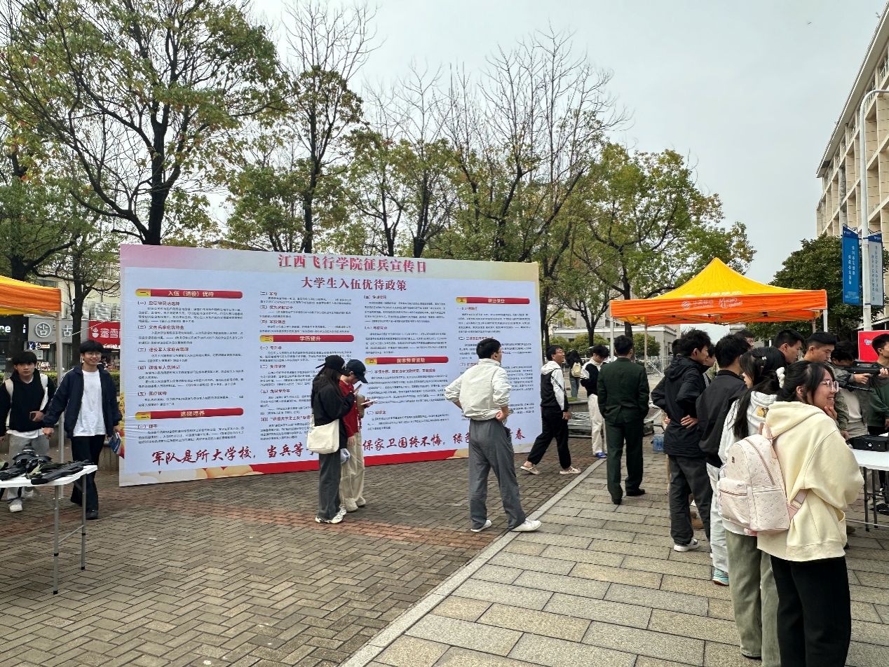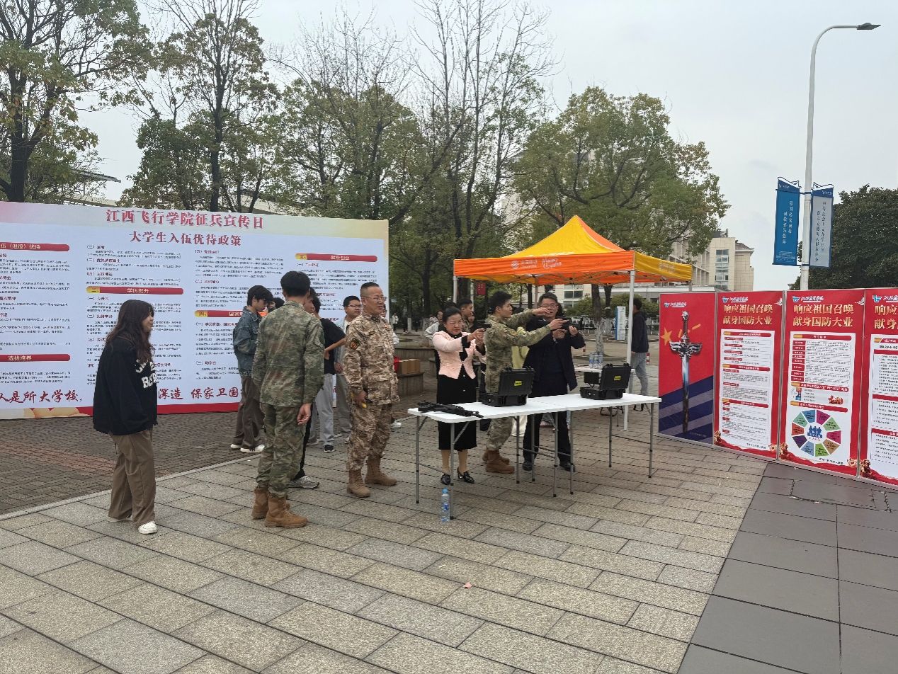 为进一步激发大学生国防意识与参军报国热情,11月4日,江西飞行学院在校园内举办了一场别开生面的征兵宣传日活动。活动现场通过政策宣讲、军事装备体验等丰富形式,吸引了众多学子驻足参与,在校园中掀起了一股“携笔从戎,逐梦军营”的热潮。