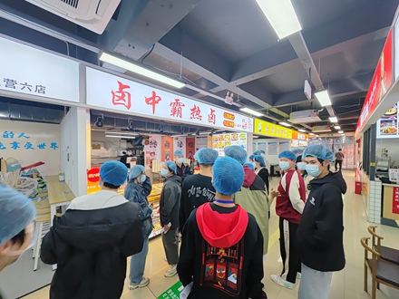 各位师生代表在工作人员的带领下依次参观了一、二食堂大餐、风味档口和商业街各个商铺的后厨,并听取工作人员介绍了食品从采购、储存到烹饪加工及食物留样等各个环节的操作流程。参观结束后大家还在意见表上写下了对食堂、商业街后续改进的意见建议。
